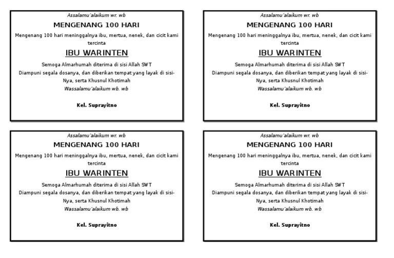 Contoh undangan tahlilan 100 hari meninggalnya.